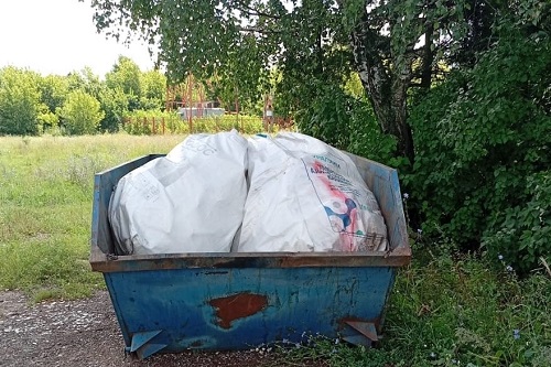 В одном из бункеров для крупногабаритных коммунальных отходов (КГО) оказались мешки с удобрениями. Адрес проблемы: Становлянский район, с. Грунин Воргол, ул. Октябрьская, 38.